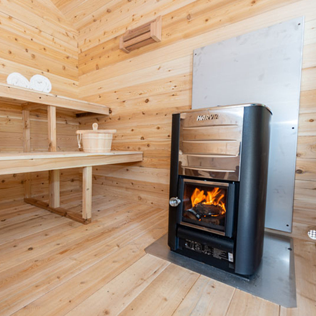 The Georgian Cabin Sauna with built in front porch is handcrafted by Leisurecraft from Eastern White Cedar that is lighter in colour and has tight knots in the wood. The cabin shape fits in well with all cottages and homes and comes in kit form.