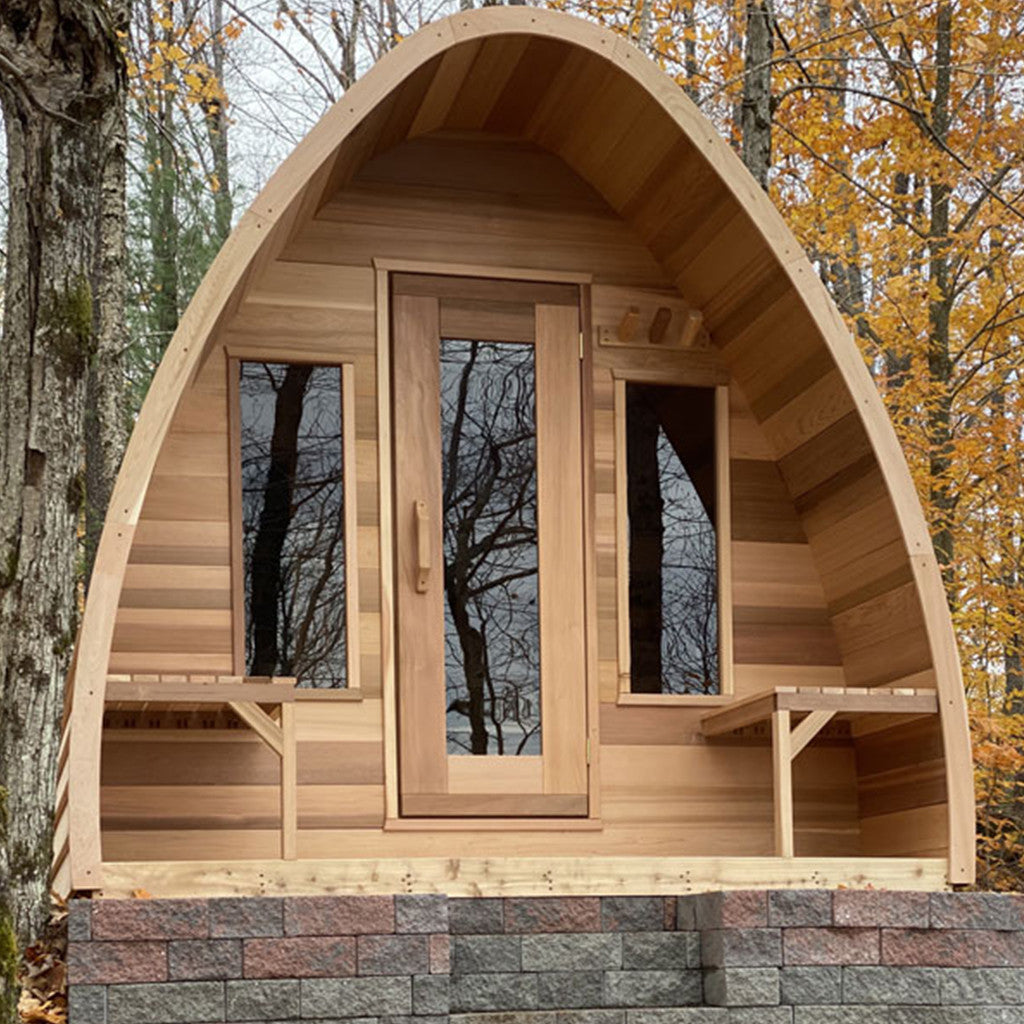 These organic rain-drop shaped outdoor saunas are the newest sensation to hit Canada. The extra head-space and wonderful design comes in various sizes and in Clear Western Red Cedar with endless options so you can customize your own outdoor sauna.