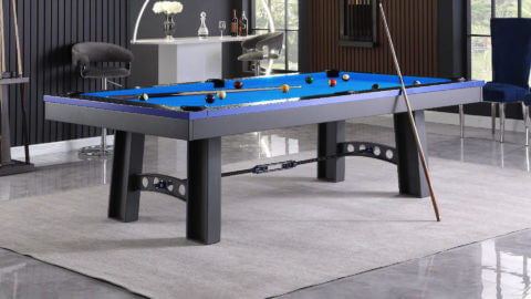 Plank & Hide Xander” Modern Pool Table “Xander” from Plank and Hide Metal Pool Table Featuring Steel Rails, Frame, and Legs 3-Piece Slate Pool Table Construction Metal Base with Industrial Design Accents Internal Drop Pockets Includes Standard Accessory Kit, 8 Foot Plank and Hide Pool Table.
